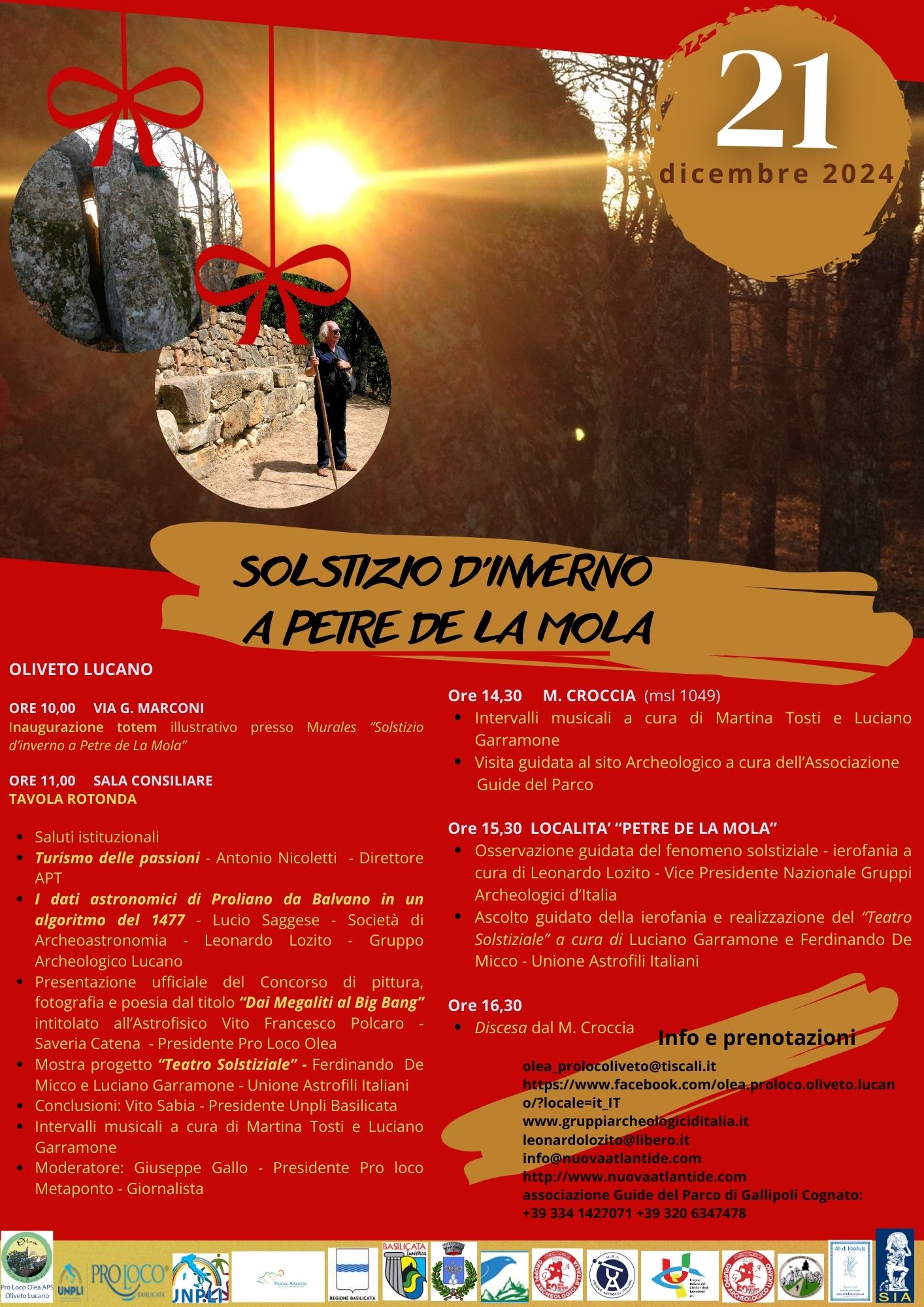 L’evento viene organizzato dalla Pro Loco di Oliveto Lucano da oltre un decennio e, per l’edizione corrente, vede la collaborazione straordinaria dell’Unione Astrofili Italiani, dei Gruppi Archeologici d’Italia, della soc. coop. Nuova Atlantide, dell’A.P.T. con il suo progetto sul Turismo delle Passioni e di tanti altri.